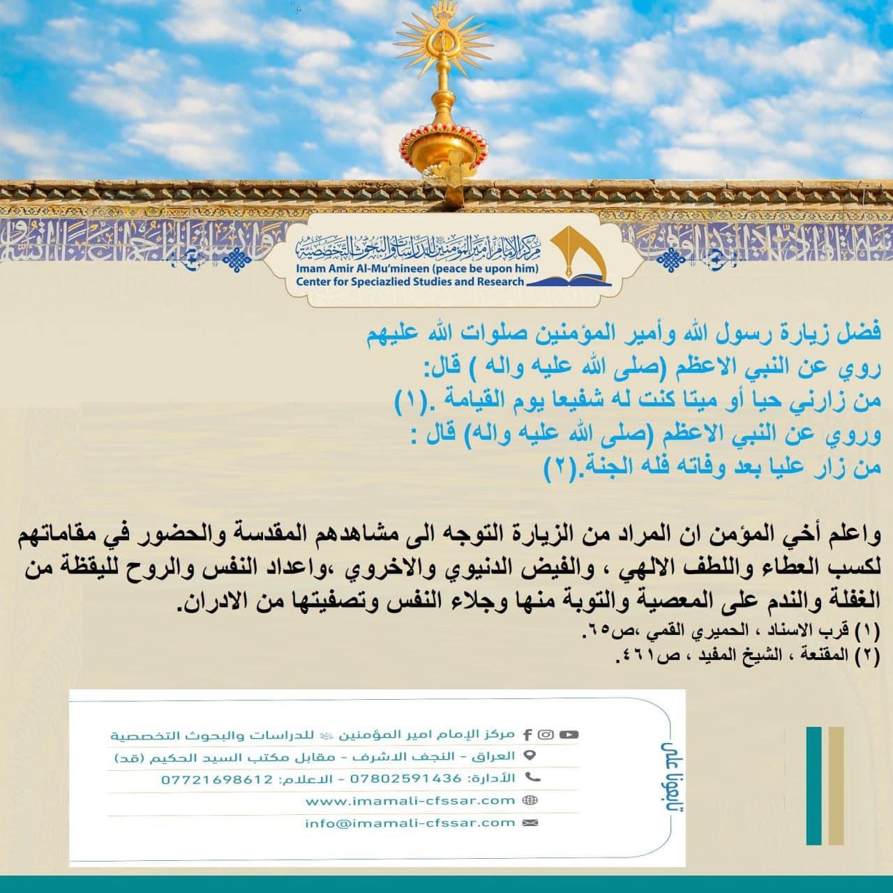 فضل زيارة الأمام أمير المؤمنين عليه السلام