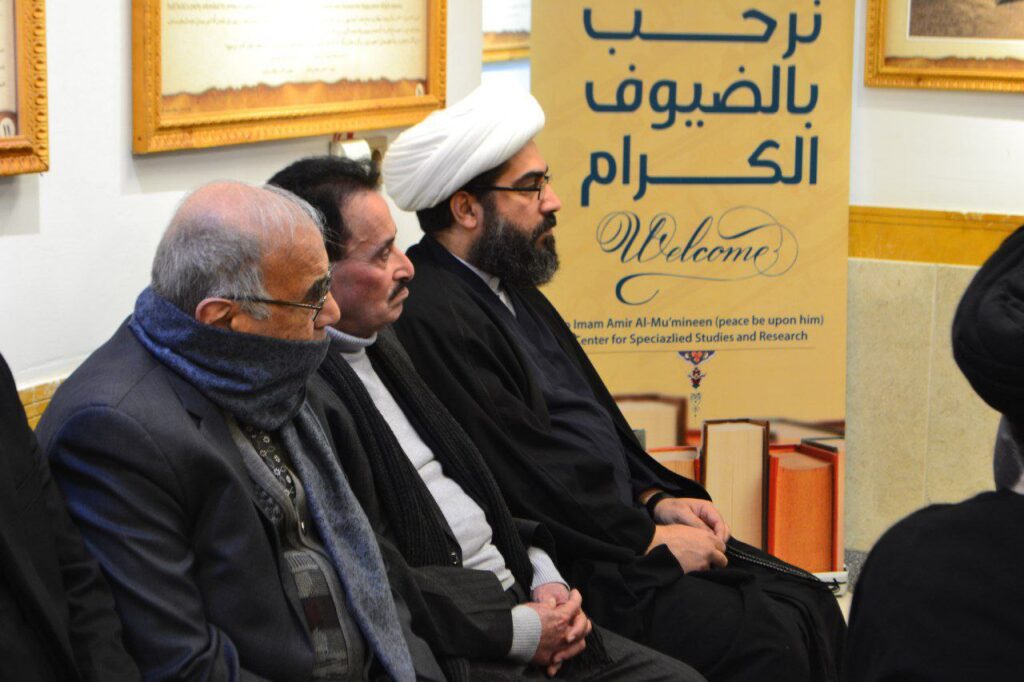 عنوان الندوة التي عقدها مركز الإمام أمير المؤمنين ( عليه السلام ) للدراسات والبحوث التخصصية في النجف الأشرف والتي ألقاها سماحة السيد مضر الحلو ( دام توفيقه ) وأدارها الأستاذ حيدر الجد ، وبحضور عدد من فضلاء الحوزة العلمية والشخصيات الأكاديمية .. وقد قدّم السيد الحلو شرحاً تحليلياً وموضوعياً حول مجتمع الكوفة وعلاقتهم بالإمام أمير المؤمنين ( عليه السلام ) .. وبعدها فسُح مجال المداخلات للحضور الكرام . وفي نهاية الندوة قدّم المشرف العام للمركز سماحة السيد علي الجابري درع الشكر والتقدير لخدماته الإسلامية ومحاضراته الدينية ..