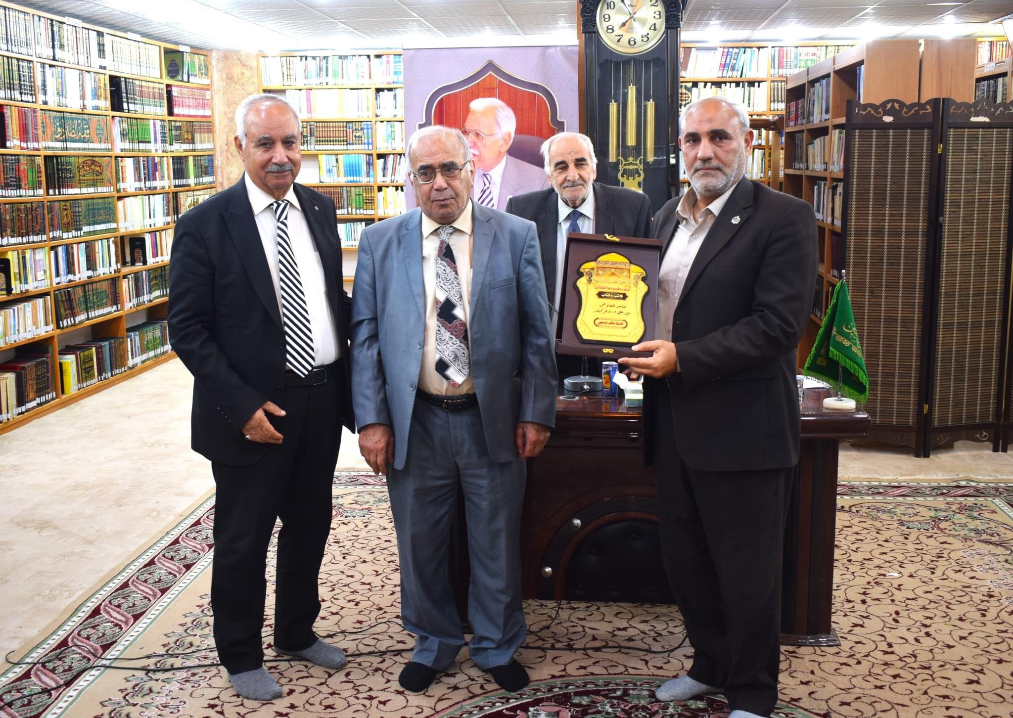 وفي نهاية الندوة كرّم الأستاذ طالب الخزاعي أمين المكتبة والأستاذ الدكتور يحيى السلطاني الأستاذ هاشم الباججي لجهوده العلمية في القاء المحاضرة.