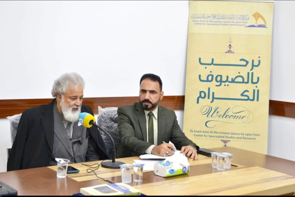 عنوان الندوة الحوارية التي أقامها مركز الإمام أمير المؤمنين ( عليه السلام ) للدراسات والبحوث التخصصية في النجف الأشرف والتي حاور فيها الباحث والمفكر المغربي الدكتور إدريس هاني ، إذ تحدث الباحث الكريم عن فكرة العدالة عند الإمام علي ( عليه السلام ) منطلقاً من القيم كنسق فاعل ،