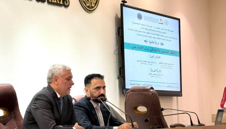 عقد مركز الإمام أمير المؤمنين ( عليه السلام ) للدراسات والبحوث التخصصية في النجف الأشرف وبالتعاون مع كلية الآداب / جامعة الكوفة ندوة ثقافية في قاعة الشهيد السيد محمد باقر الصدر ( قدس سره ) تحت عنوان :