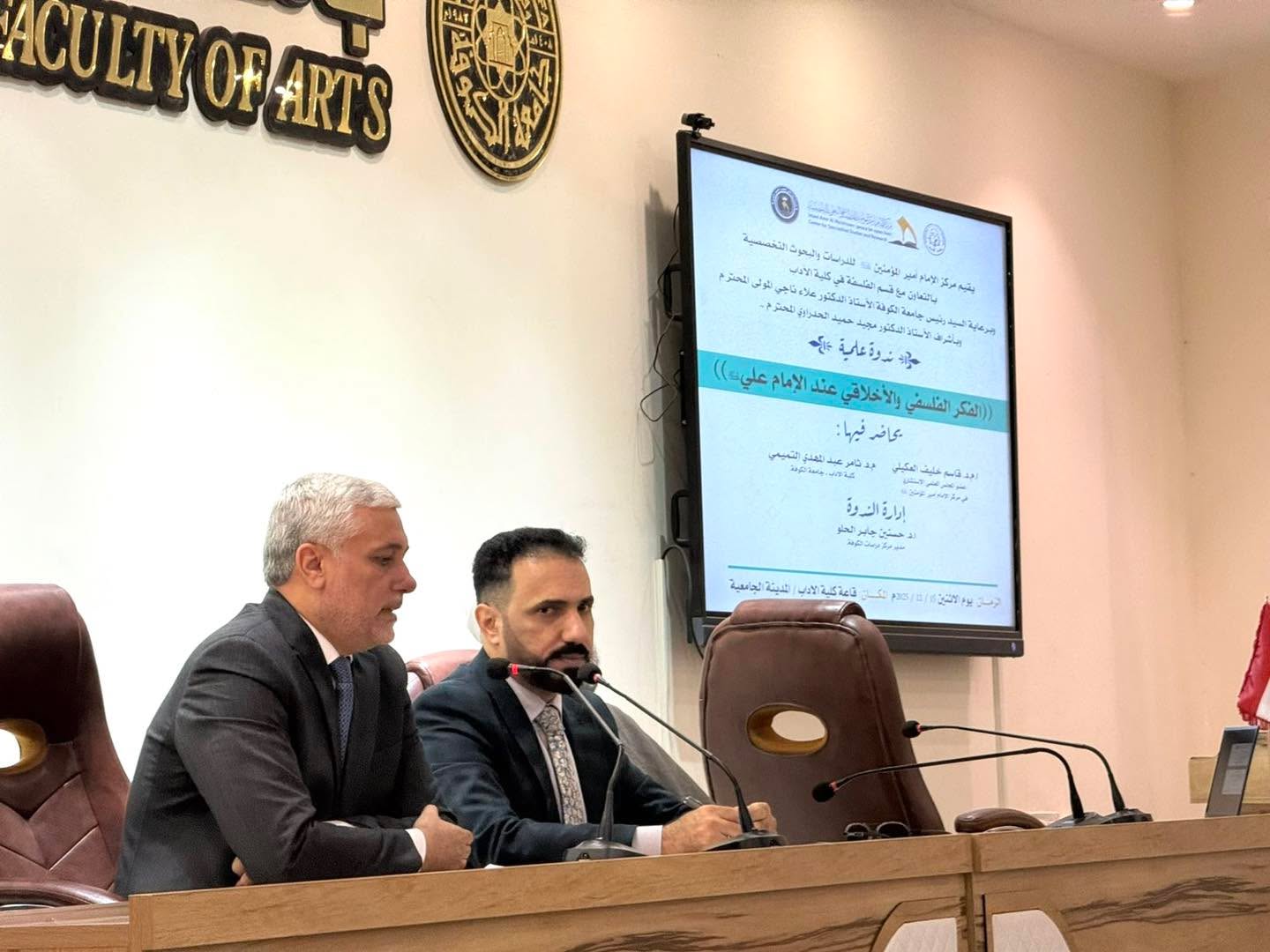 كما شارك في الندوة الأستاذ المساعد الدكتور ثامر عبد المهدي حربي من قسم الفلسفة بورقة بحثية علمية ، وقد كانت أدارة الجلسة من قبل الأستاذ الدكتور حسنين جابر الحلو مدير مركز دراسات الكوفة .