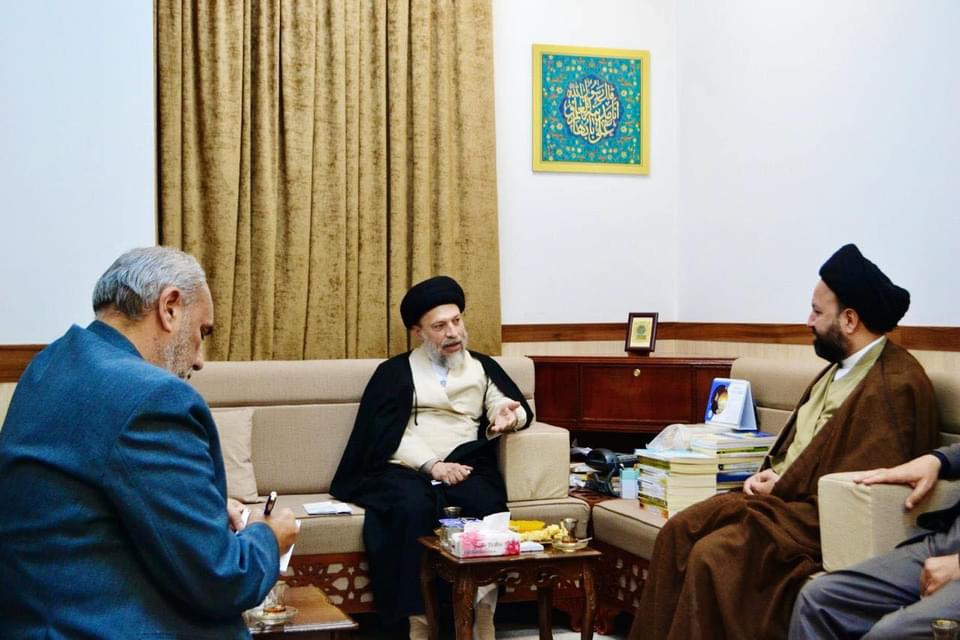 أستقبل سماحة السيد علي الجابري المشرف العام لمركز الإمام أمير المؤمنين ( عليه السلام ) للدراسات والبحوث التخصصية في النجف الأشرف سماحة السيد رياض الحكيم ( دام عزه ) أستاذ البحث الخارج في حوزة قم المقدسة وبحضور الأستاذ الدكتور تحسين فاضل عباس والأستاذ هاشم الباچچي وفضيلة الشيخ أحمد الذهبي ..
