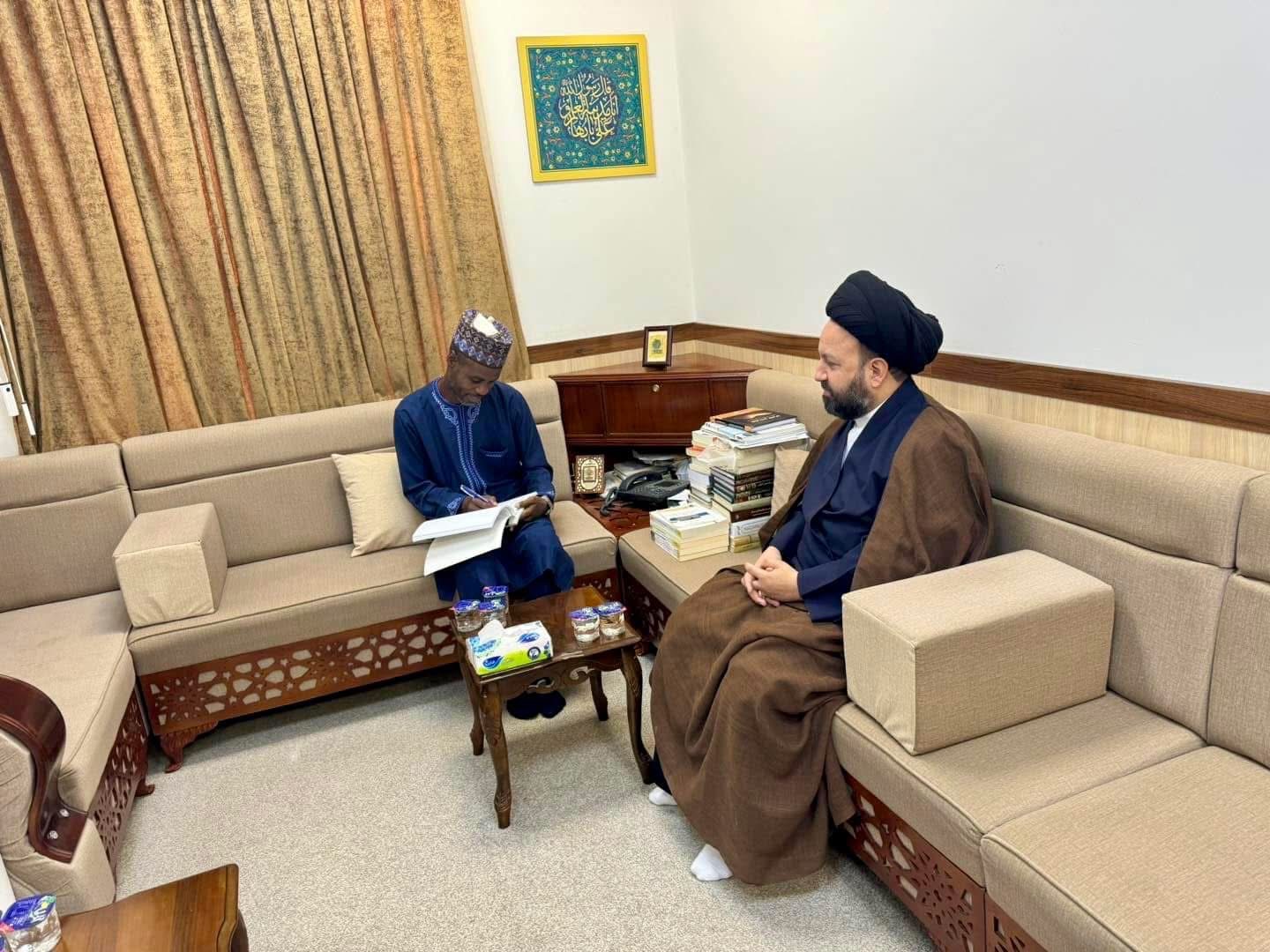 أستقبل سماحة السيد علي الجابري ( دام عزه ) المشرف العام لمركز الإمام أمير المؤمنين ( عليه السلام ) للدراسات والبحوث التخصصية في النجف الأشرف كل من الخطيب الحسيني فضيلة الشيخ محمد المدلوح ( دام عزه ) من المنطقة الشرقية في السعودية