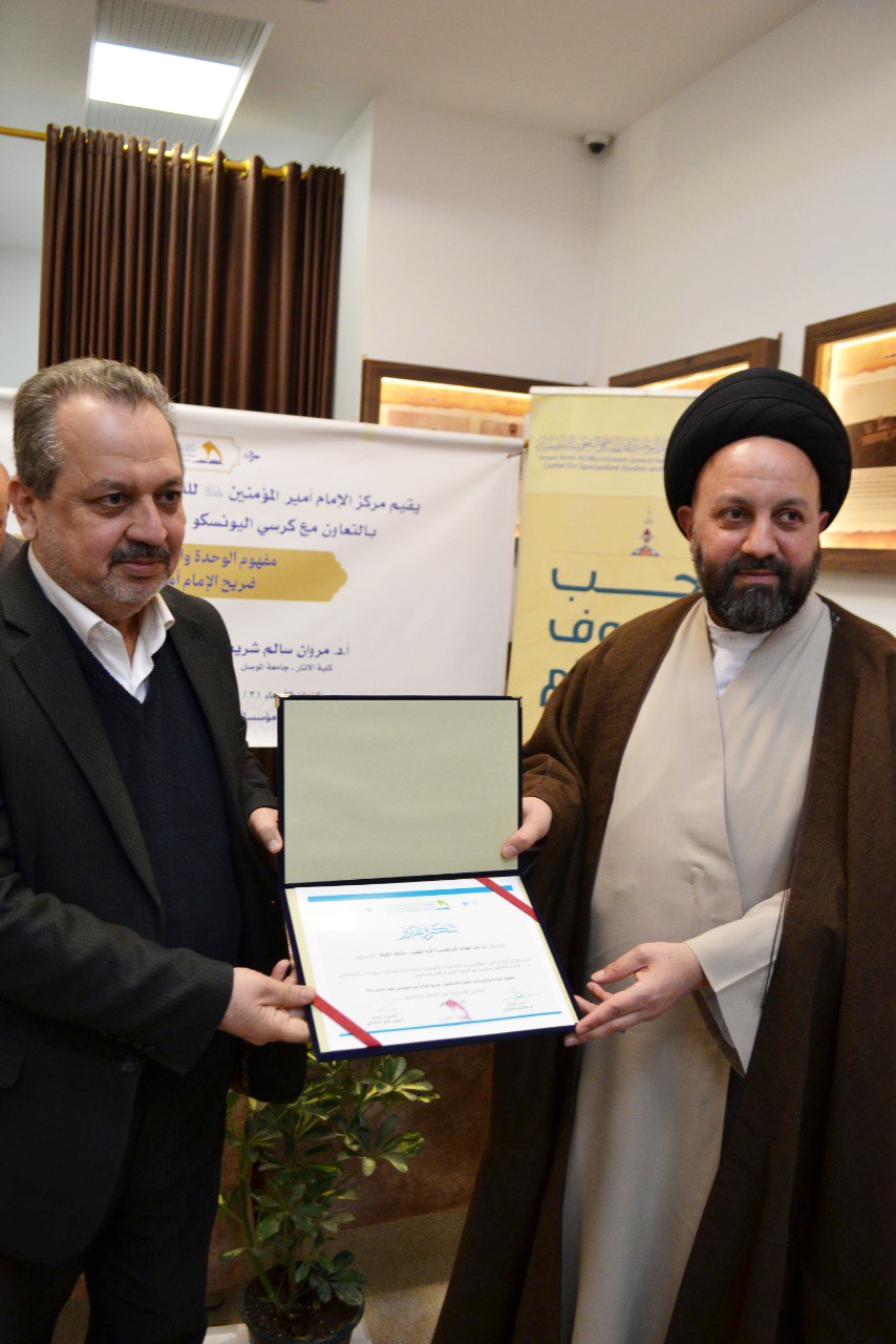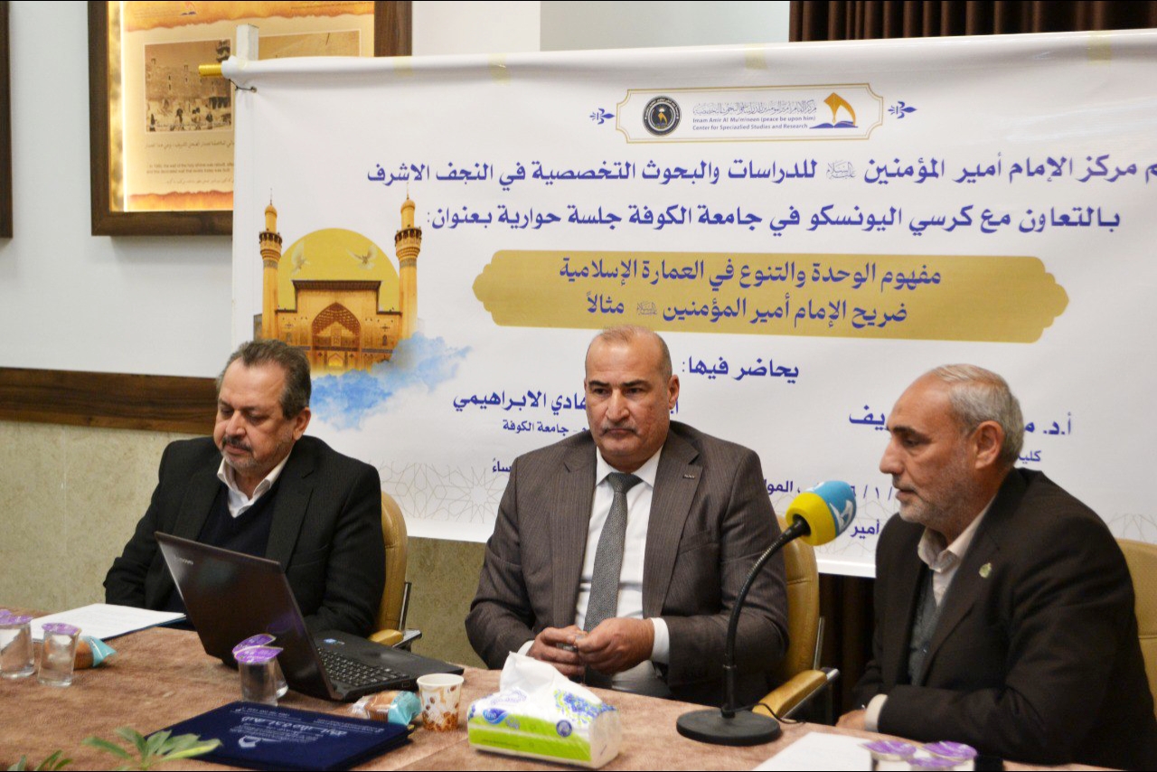 في إطار التعاون العلمي والأكاديمي، واحتفاءً بزيارة وفد جامعة الموصل إلى مركز الإمام أمير المؤمنين (عليه السلام) للدراسات والبحوث التخصصية في النجف الأشرف، نظم المركز، بالتعاون مع كرسي اليونسكو في جامعة الكوفة وكلية الآثار في جامعة الموصل، جلسة حوارية علمية بعنوان: