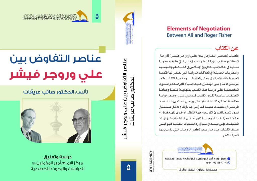 عناصر التفاوض بين علي وروجر فيشر تأليف الدكتور صائب عريقات كتب آخر تحديث يناير 9, 2023 571 شارك 571 شارك